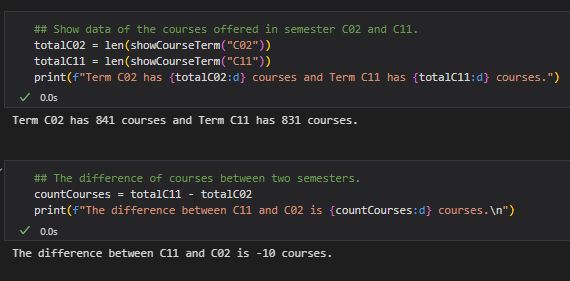 Term C02 has courses and Term C11 has courses. The difference between C11 and C02 is courses.