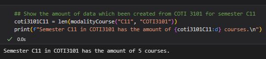 You create a database called UPRB_System has information related to each semester of the courses created. We have a file in uprb_database.csv. The information contains the teacher’s name, course code, section, name of the course, day and time it is offered, amount of credits, capacity, room and modality. The UPR Bayamon wants summarize all the information that they garther since 2017. Write a program in Python (modalityStudent.py) and R to answer the following questions.